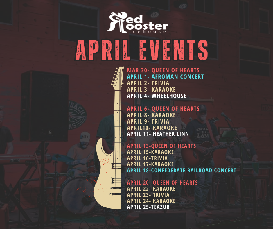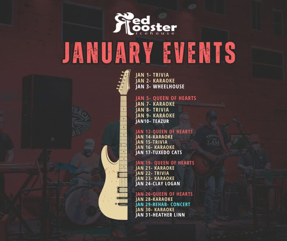 From rising local talent to crowd-favorite regional acts, our weekly shows deliver high-energy performances that keep guests coming back. Whether you're looking to catch a show with friends or just enjoy a night of great music and cold drinks, Red Rooster is your go-to for live entertainment in Hawkins, TX. Check our schedule and join us this weekend!